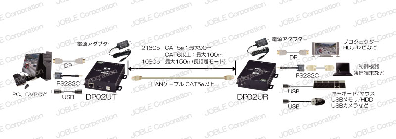 最大4Kのディスプレイポート(映像/音声)とUSB・RS232CをCAT5e以上の