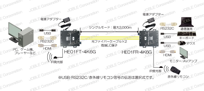最大4K 60HzのHDMI映像とUSB/赤外線リモコン信号/RS232C(選択)を