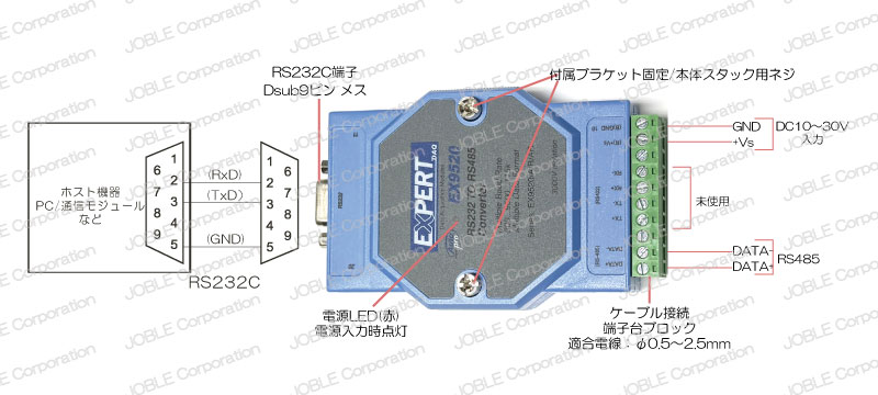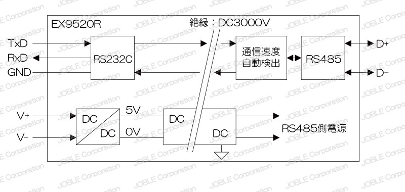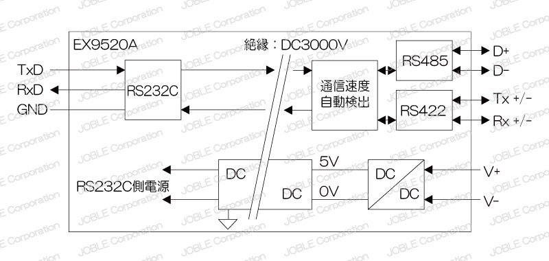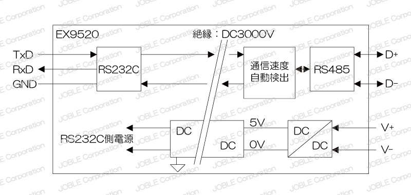 供給する場合にはRS232C側が絶縁されているEX9520またはEX9520Aを使用します。