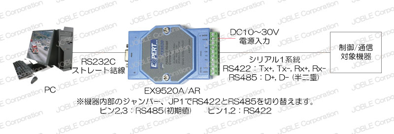 ※「EX9520A」「EX9520AR」のRS422とRS485は内部基板上にあるJP1の差し替えで変更します。 (初期状態:RS485)