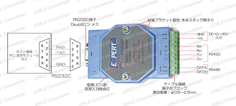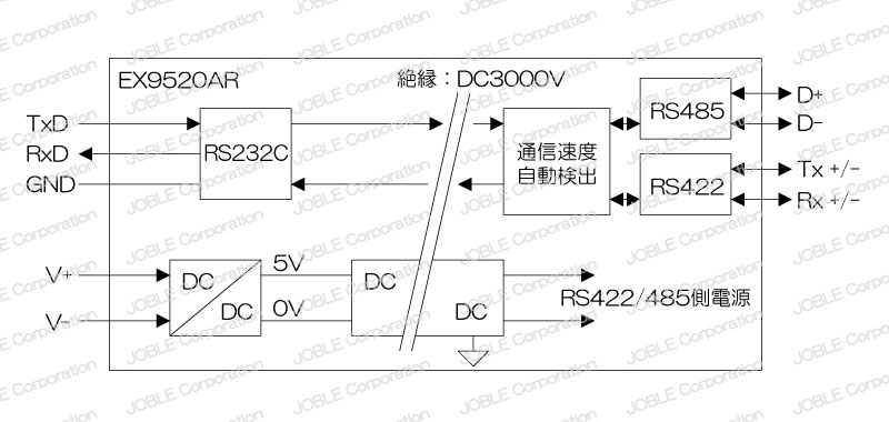 EX9520シリーズは、RS232CとRS422やRS485で相互に変換を行う