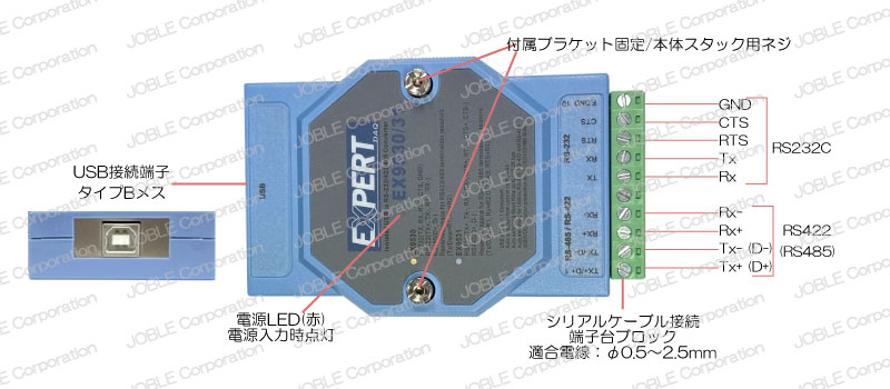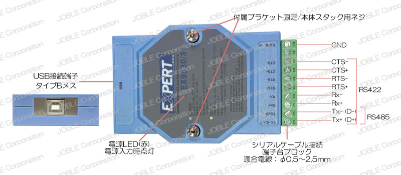 RS232C/422/485端子台ブロック接続 (ネジ式端子台 適合電線:φ0.5~2.5mm) ※RS232CはTx/Rx/RTS/CTS/GNDのみ |