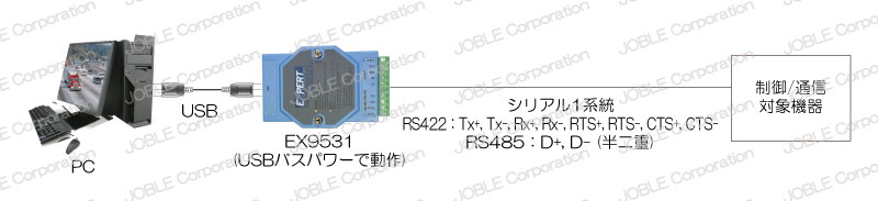 EX9531はRS422(Tx/Rx/RTS/CTS)/485に対応します。