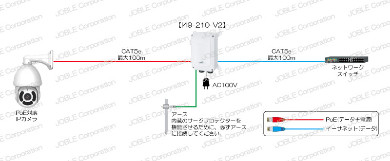 I49-210-V2からカメラなどの接続機器とは100mの延長が可能
