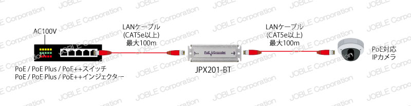 JPX201-BTはPoE++対応スイッチまたインジェクター等から電力を受電し動作するため