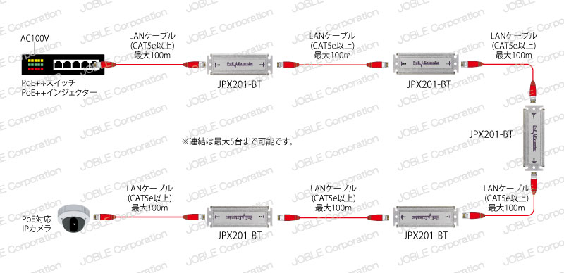 また、JPX201-BTは5台まで連結することができ最大600mまで延長することができます。